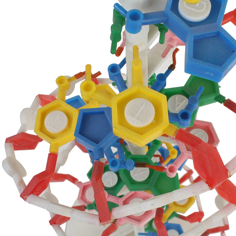 Pre-built DNA model, 10cm to 1nm scale Attractive color scheme Can be dissembled for closer inspection Central pillar rotates in