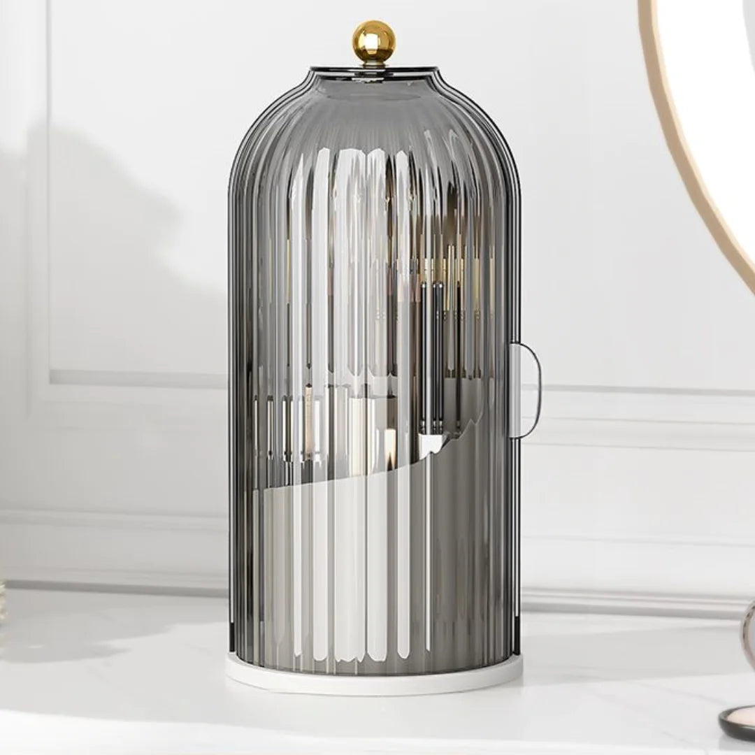 لا يحافظ منظمنا على مكياجك خاليًا من الغبار فحسب، بل يضيف تصميمه الأنيق لمسة من الرقي إلى أي طاولة أو منضدة. من الأناقة اليومية إلى المناسبات الخاصة، يضمن لك صندوق التخزين الخاص بنا الاستعداد دائمًا للتألق!