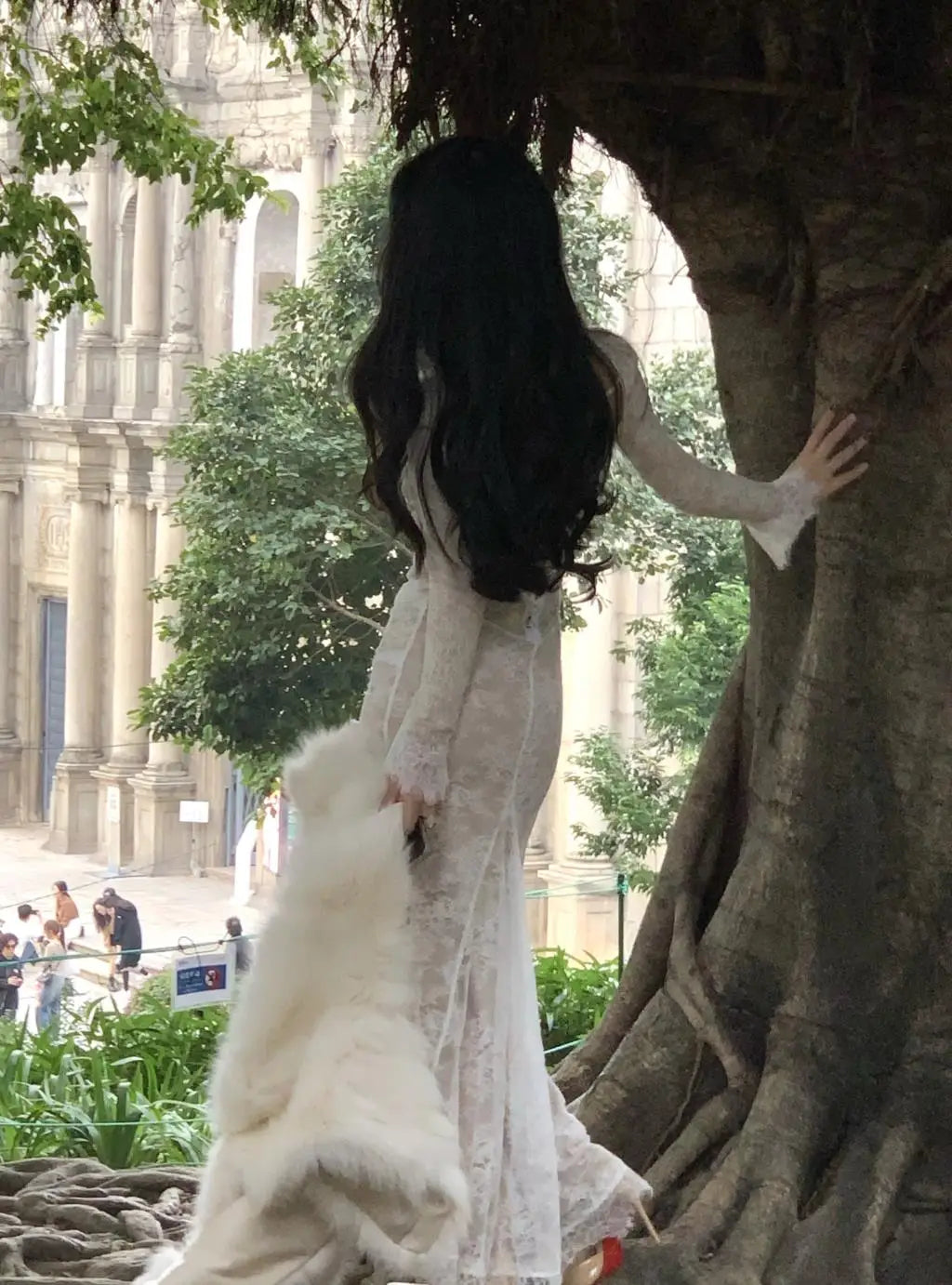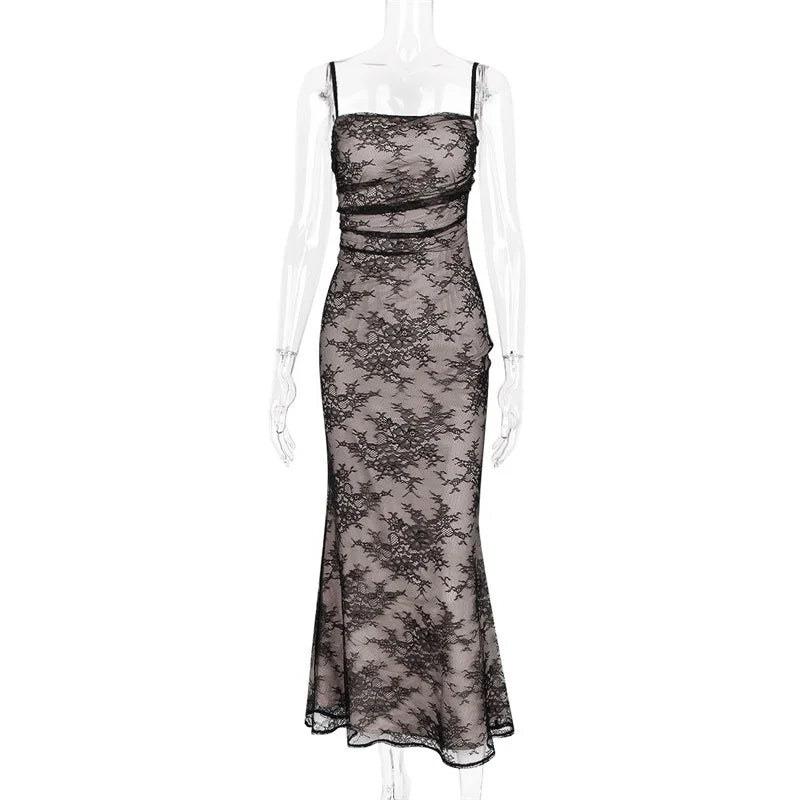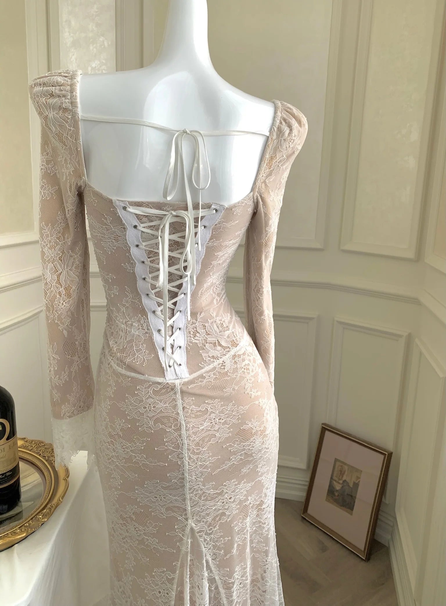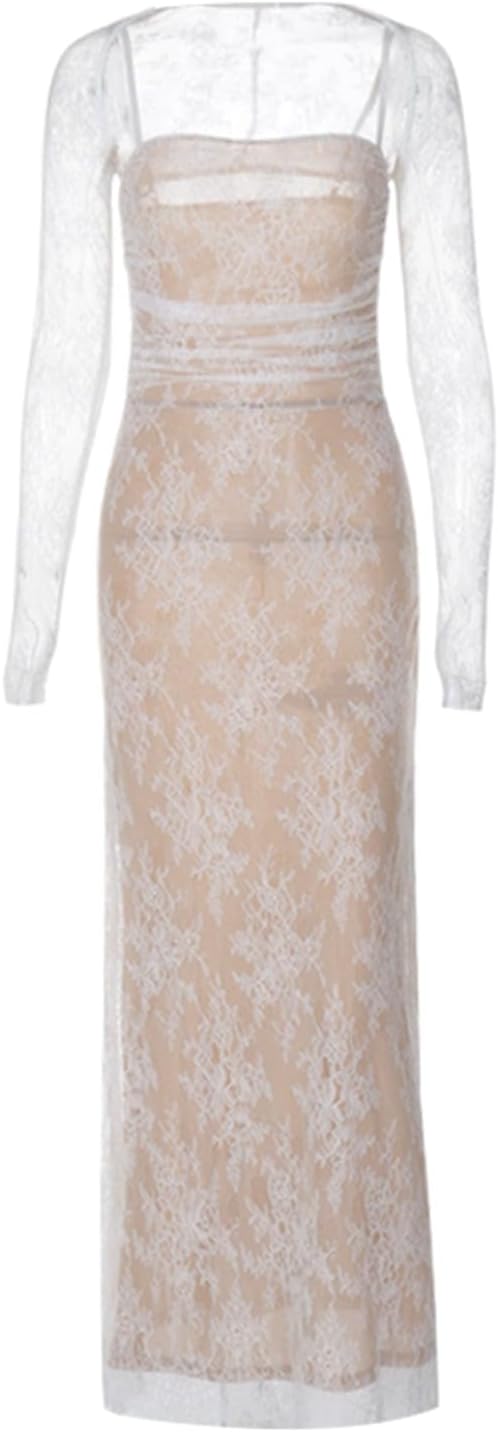 فستان ماكسي أنيق عتيق من الدانتيل بأكمام طويلة