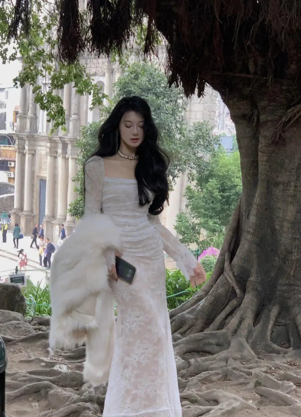 - الطول الأقصى : هذا الفستان الطويل يخلق صورة ظلية درامية ممدودة تناسب جميع أنواع الجسم، مما يجعله خيارًا مثاليًا للمناسبات الرسمية أو حفلات الزفاف أو الحفلات المسائية.