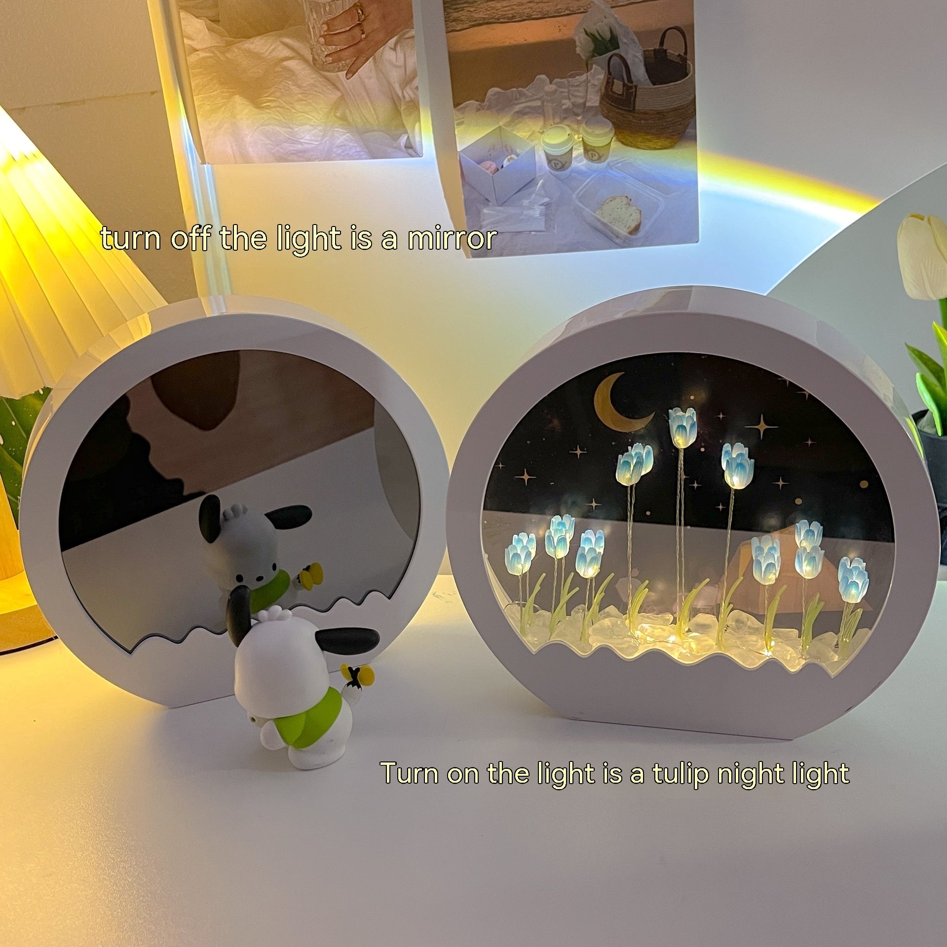 Tulip Rose Small Night Lamp Diy Handmade Mirror Flower Sea Bouquet Gift