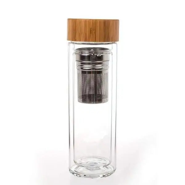 Elevate your tea-drinking experience with our glass infuser bottle, combining style and functionality in one sleek design. Whether you prefer herbal blends or classic green tea, this bottle ensures optimal flavor extraction and easy cleanup. Perfect for tea enthusiasts who value quality and convenience, it's the ideal companion for enjoying tea wherever you go.