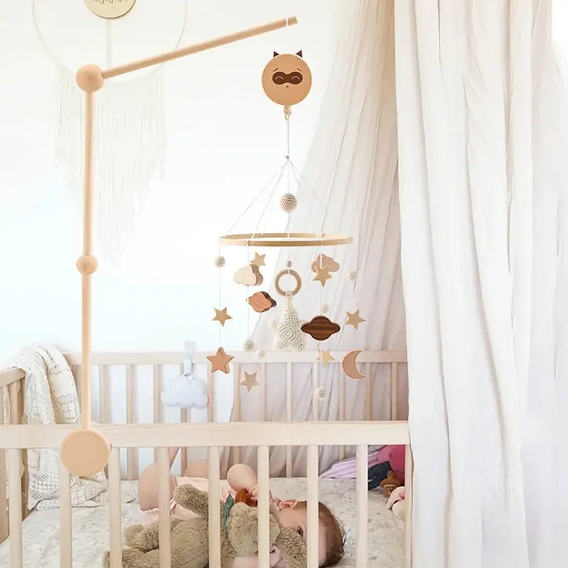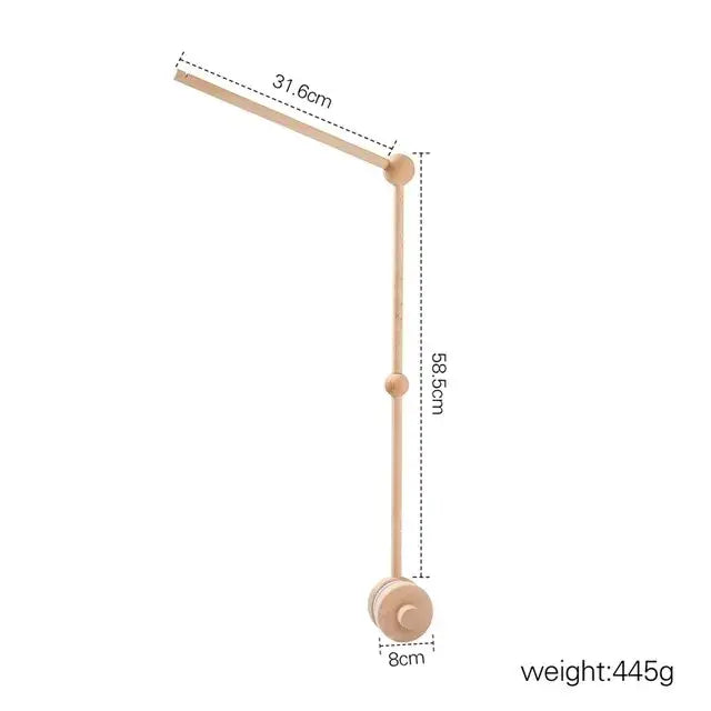 Transform your baby's crib into a calming sanctuary with our wooden mobile holder, designed to hang rattles and bells that gently entertain and soothe.