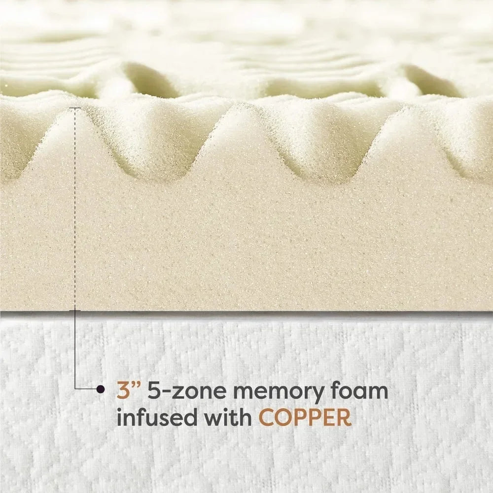 3 Inch 5-Zone Memory Foam Mattress Topper, Fresh Copper Infusion, Full