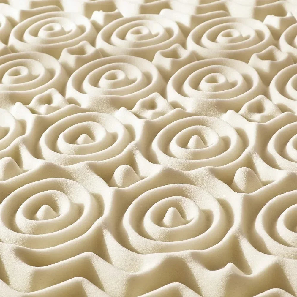 Best Price Mattress New 5-zone beige bed topper is a 3 Inch CertiPUR-US certified, premium memory foam mattress topper for maximum comfort and better sleep. Product features a 5 Body zone with different point of contact to better prevents tossing and turning. Its copper Infused memory foam layer with properties for enhanced Freshness