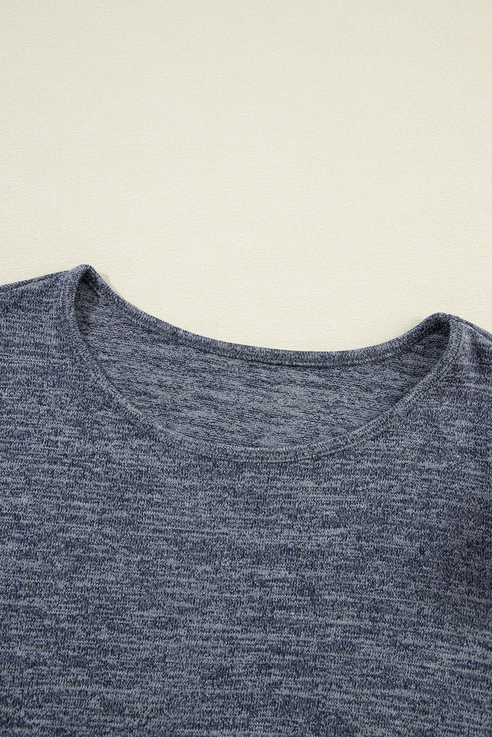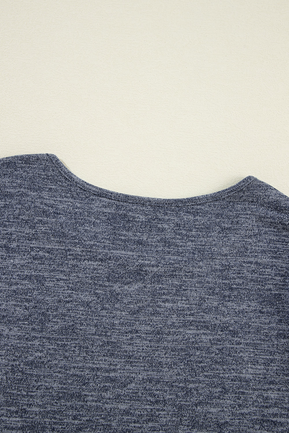 Blue Ruffle Tiered Floral Sleeve Crew Neck Blouse
