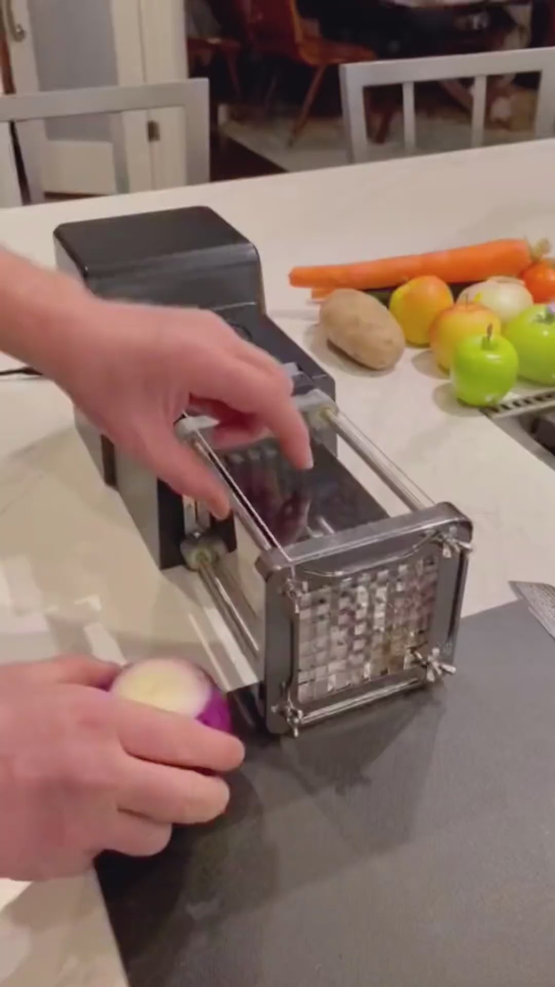 【HIGH-QUALITY SHARP BLADE】: The blade of the french fry cutter stainless steel made of high-quality stainless steel, durable and easy to clean; The sharp blade can easily and quickly cut potatoes, carrots, cucumbers, eggplants, onions, apples pears, etc.