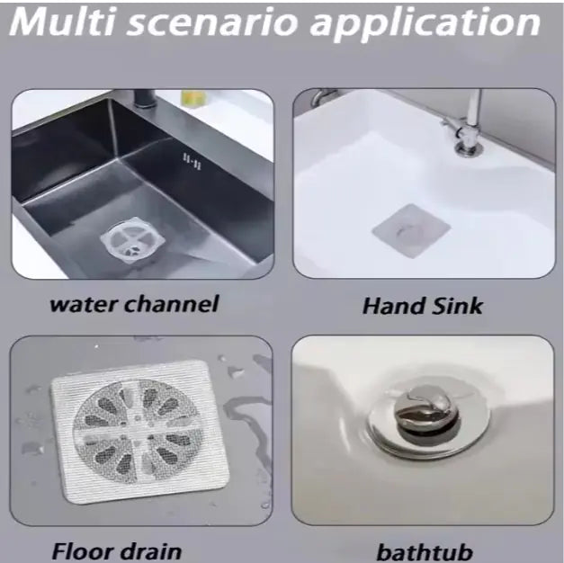 The Bathroom Hair Filter & Kitchen Anti-Clogging Self-Adhesive Drain Stickers are innovative, easy-to-use solutions designed to prevent clogs, block unwanted hair, and stop bugs from entering your bathroom and kitchen drains. Featuring a self-adhesive design, these drain stickers can be easily applied to any floor drain, providing long-lasting protection from debris and pests. Perfect for high-traffic areas, these filters help maintain clean, hygienic drains while keeping water flowing freely and preventing messy blockages.